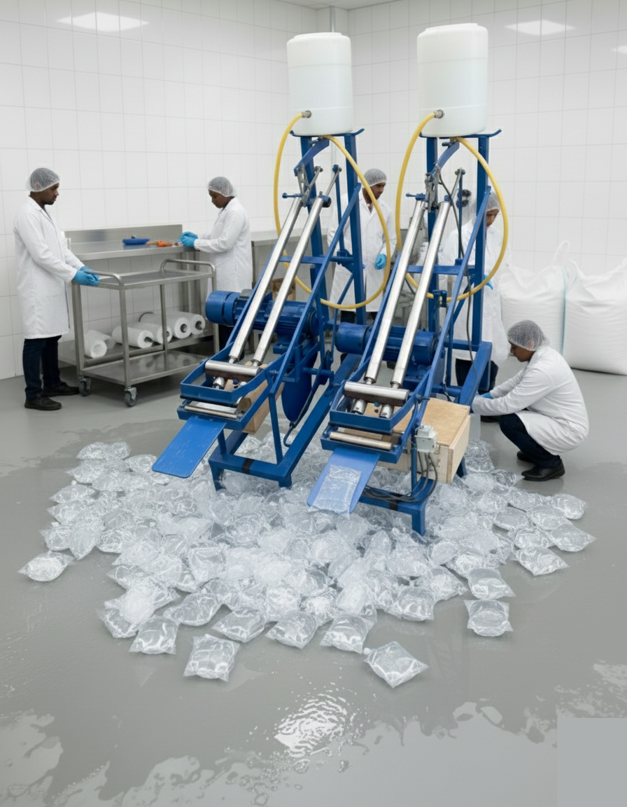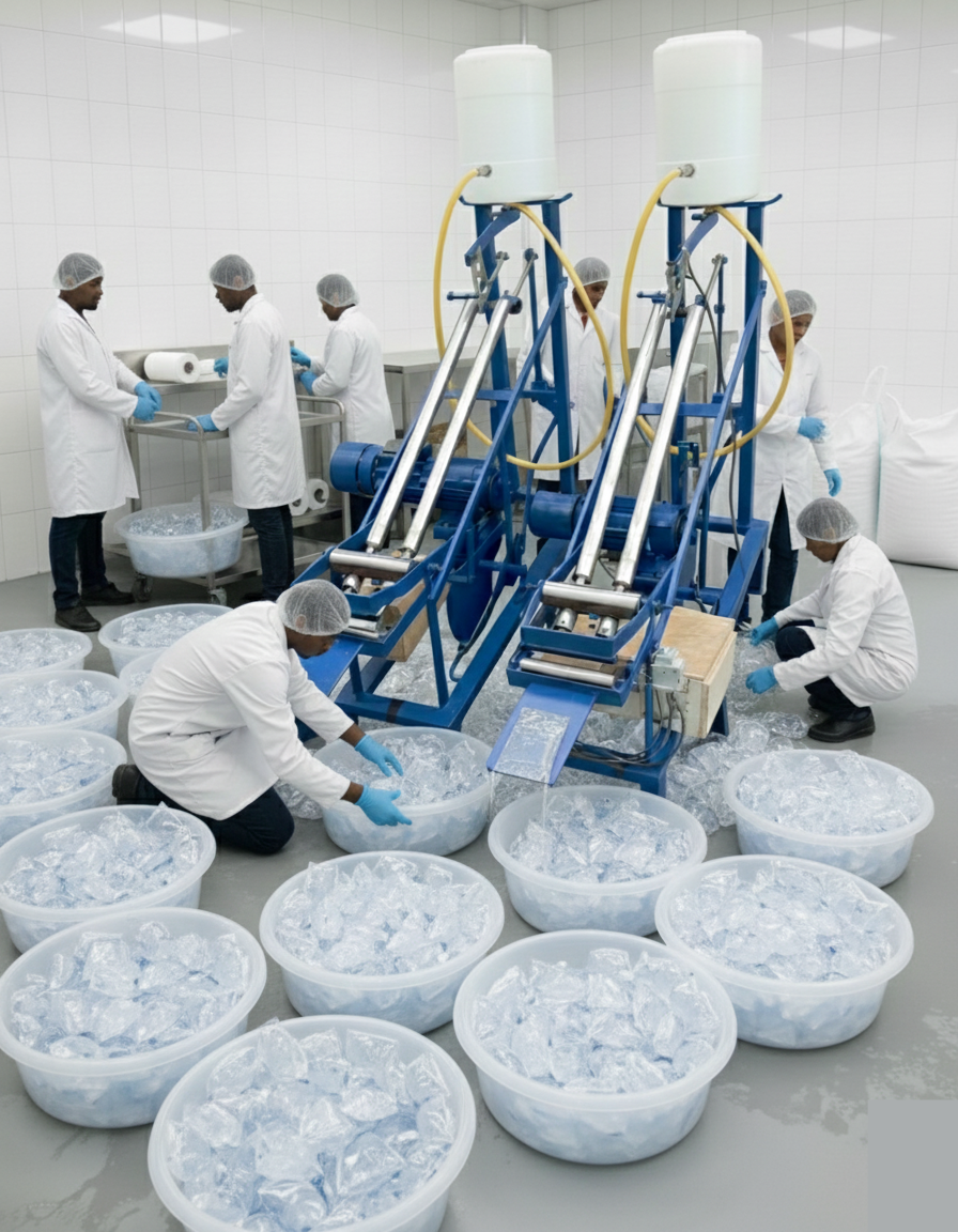 Cette machine automatique de fabrication de sachets d’eau vous permet de produire et conditionner de l’eau potable en sachets, rapidement, proprement et en grande quantité. Elle automatise tout le processus : remplissage précis, soudure solide et sortie immédiate des sachets prêts à la vente. Résultat : un produit de première nécessité, vendu tous les jours, avec une rotation ultra-rapide et un besoin permanent sur le marché.